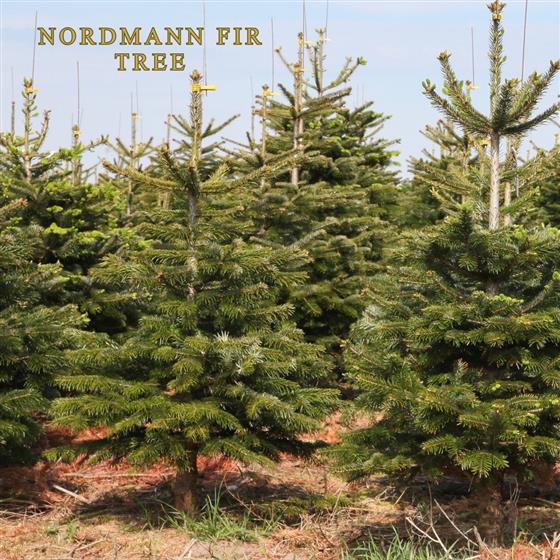 - Nordmann Fir, known for superb needle retention and glossy deep-green foliage