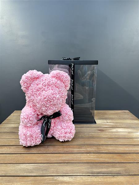 Introducing our stunning 40cm Forever Rose Bear, a perfect blend of elegance and charm. Crafted meticulously from soft, high-quality foam roses, this enchanting bear is not just a decorative piece; it’s a heartfelt gift that speaks volumes of love and affection.